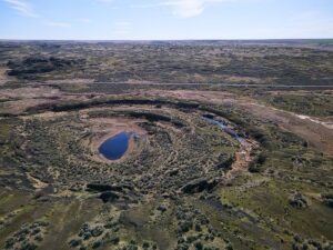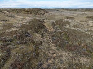 Lakeview Ranch (North of Odessa, WA) tells another story. The floodwaters flowing down Lake Creek Coulee spread out in this area, carving a random, chaotic landscape as they entered Crab Creek near Odessa. Bob’s Lakes, central to this area of chaos, are a central feature of this terrain, and the surrounding buttes and cliffs stand as a testament to the flood.