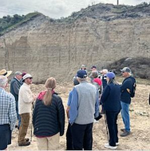 On a cool morning in late March 2026, a group of 16 curious field trip participants stood atop a scenic viewpoint in Richland, Washington looking out over the Pasco Basin, with the Yakima and Columbia Rivers silently flowing below. George Last, a local geologist and field trip leader for the Lake Lewis Chapter of the Ice Age Floods Institute, was explaining a sequence of geologic events that shaped the region surrounding the Tri-Cities. Massive lava flows filled the Columbia Basin with layers of basalt thousands of feet thick. The successive flows combined with tectonic forces uplifted and formed the anticlines along the local section of the Olympic-Wallowa Lineament – on clear display here as a chain of large rolling hills stretching from Rattlesnake Mountain to our northwest to the Horse Heaven Hills southeast of our vantage point. Ancestral rivers, responding to the changes in topography, changed courses across the landscape, cutting new routes towards the Pacific Ocean. Finally, a series of cataclysmic ice age floods roared in from its northerly source, backing up behind the natural constriction of Wallula Gap to form temporary Lake Lewis. The hilltop we occupied would have been completely overtopped by over 400 feet of debris-laden floodwaters.