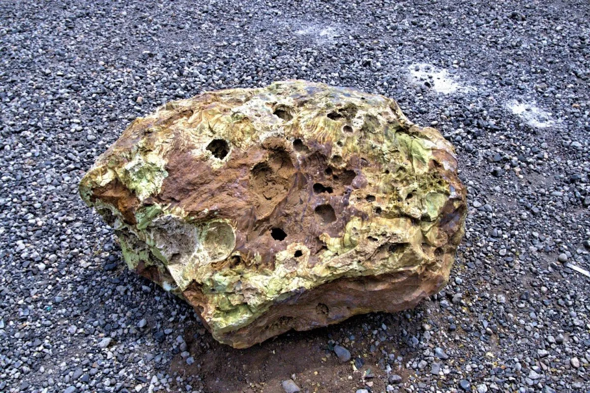 While doing ground preparation for the site of the new Lakeridge Middle School in Lake Oswego, Oregon, it was not unusual for Jacob Parker, Project Superintendent of Construction with Skanska to look at the boulders that had been dug up to see if any would be good for landscaping. What was unusual, this time, was the tan and yellow-greenish boulder that he spotted among the many basalt boulders. Using an app on his cell phone the rock was originally thought to be autunite, which contains uranium. This would not be good news for a school to have a radioactive boulder near students. Parker notified Paul Eskeldson, District Project Manager who informed the school district and they wanted it moved off the property. Eskeldson, who had heard a lecture about erratics by Rick Thompson, president of the Lower Columbia chapter of the Ice Age Floods Institute, emailed him a photo asking if the Tualatin Ice Age Foundation might be interested in adding to their collection. Thompson in turn contacted Dr. Scott Burns, Professor of Geology at Portland State University who immediately went out to see the boulder and took Dr. Martin Streck, PSU Professor of Geology specializing in mineralogy who recognized that it was rhyolite. Rhyolite, though native to eastern Oregon is not found west of the Cascade Mountains which makes this an extremely rare find. Research could only find one other mention of a rhyolite erratic, in Canby, Oregon, by none other than J Harlen Bretz in his The Late Pleistocene Submergence in the Columbia Valley of Oregon and Washington paper published in the October-November 1919 issue of the Journal of Geology. That erratic has been lost and it is not known if it even still exists. Finding this new boulder where it was, offered a great educational opportunity for the students at the school. On May 17th Dr. Scott Burns, standing next to the boulder, gave a short talk in the morning and again in the afternoon about how the 2,000 pound boulder was likely deposited between 15,000 to 18,000 years ago during the Lake Missoula Floods. Each student who wanted was able to take a small broken piece as a memento. Skanska issued a press release and invited the media, and several members of the local press came to cover the event. Over the following week the story was picked up by additional media including ABC, UPI and Newsweek giving it national exposure. But the most surprising one was when it appeared in the Borneo Bulletin giving the story international exposure. The boulder was then carefully hoisted into a truck for transport by Brian Clopton Excavating and taken to the Tualatin Heritage Center where it was installed near several granite and feldspar erratics they had moved in the past. Principal Schultz of Lakeridge Middle School said that even though the rock was discovered not to be a radioactive threat to students the school was very happy to have donated it so it can be on display in a place for the general public to see.